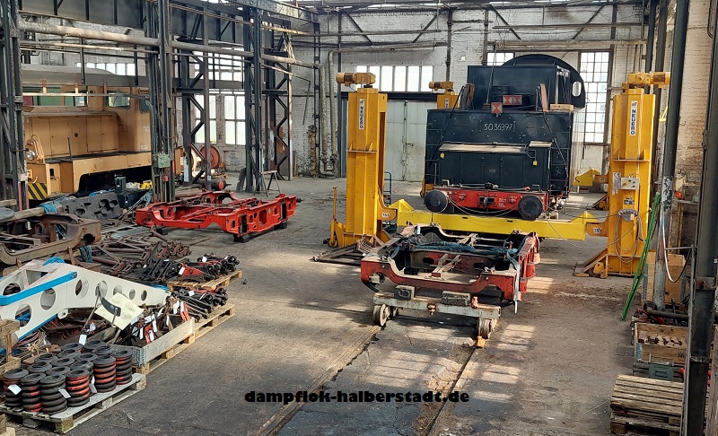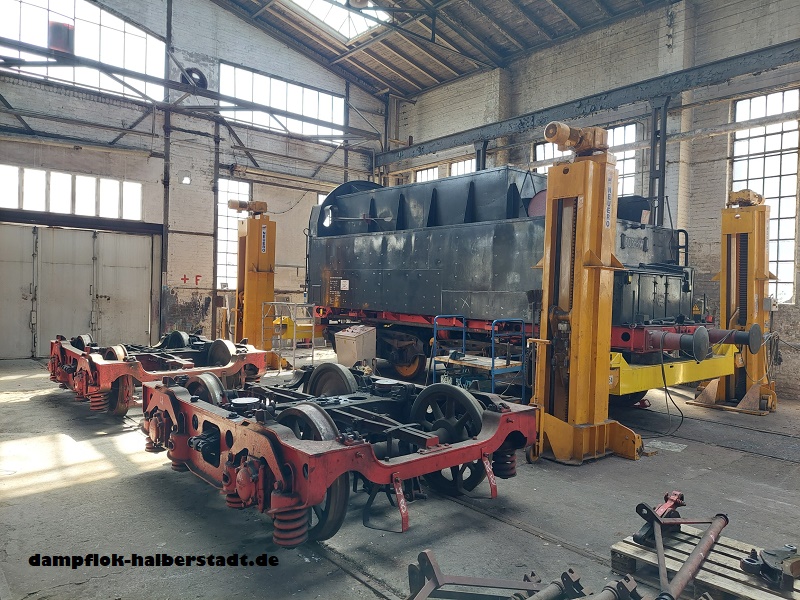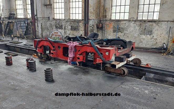Wir haben länger nichts von uns hören lassen, was nicht heißt das bei uns nichts passiert ist. Neben dem regelmäßigen Fahrtenprogramm auf der Rübelandbahn und diversen Lokfesten (Bw Staßfurt und Bw Dresden Altstadt)mit der 95 1027-2, was uns natürlich recht stark einbindet, wird natürlich auch mal ein Gastfahrzeug betreut. Im Mai war die 01 1104 von Faszination Dampf e.V. für 4 Tage zu Gast bei uns Blankenburg, dabei wurde unsere Infrastruktur von den Kollegen dankend angenommen. Auch an unserer 50 3708-0 wird weiter in kleinen Schritten gearbeitet. So wurden für den Tender Hilfsdrehgestelle gebaut, damit wir den Tender ohne seine eigenen Drehgestellen in der Werkstatt bewegen können. Die Tenderdrehgestelle wurden komplett zerlegt und es wurde begonnen die einzelnen Bauteile zu reinigen. Im nächsten Schritt steht das Prüfen der Tenderfedern auf dem Plan, der erste Satz Federn(aus Reservedrehstellen) ist leider bereits durch die Prüfung gefallen. Die Blattfedern können jedoch noch einmal aufgearbeitet werden, von den Spiralfedern sind leider nur noch 4 von 16 verwendbar. Mittels Ultraschall wurden am Tender Wanddickenmessungen durchgeführt um den Umfang der Blecharbeiten festzulegen, auch da hat der Einsatz seine Spuren hinterlassen. Zu Guter Letzt konnten wir für unsere Werkstatt diverse Maschinen (Drehbank, Fräse, Abkantbank sowie Dreiwalzenmaschine) übernehmen, damit können wir perspektivisch noch mehr in der eigenen Werkstatt fertigen. Natürlich gibt es auch ein paar Bilder dazu.